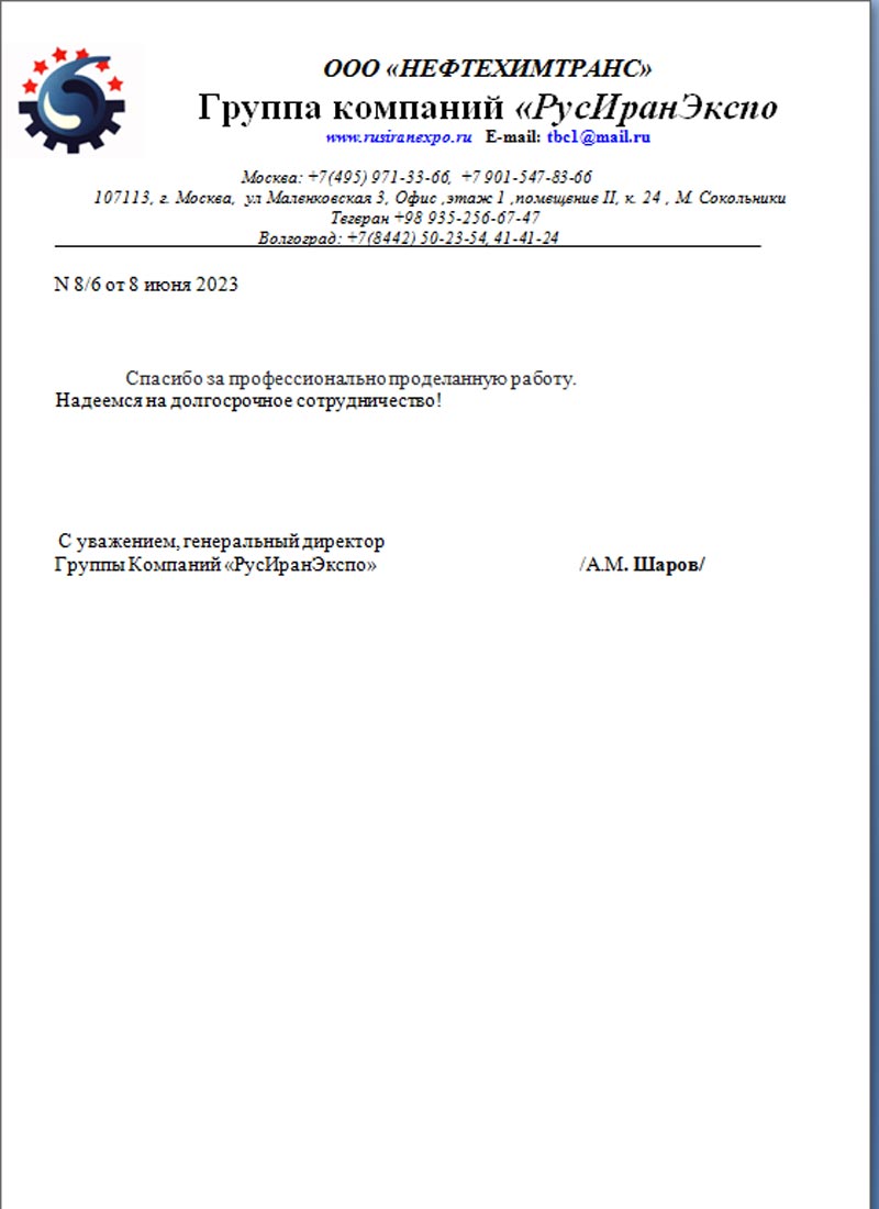 ГК "РусИранЭкспо" (ООО "НЕФТЕХИМТРАНС")