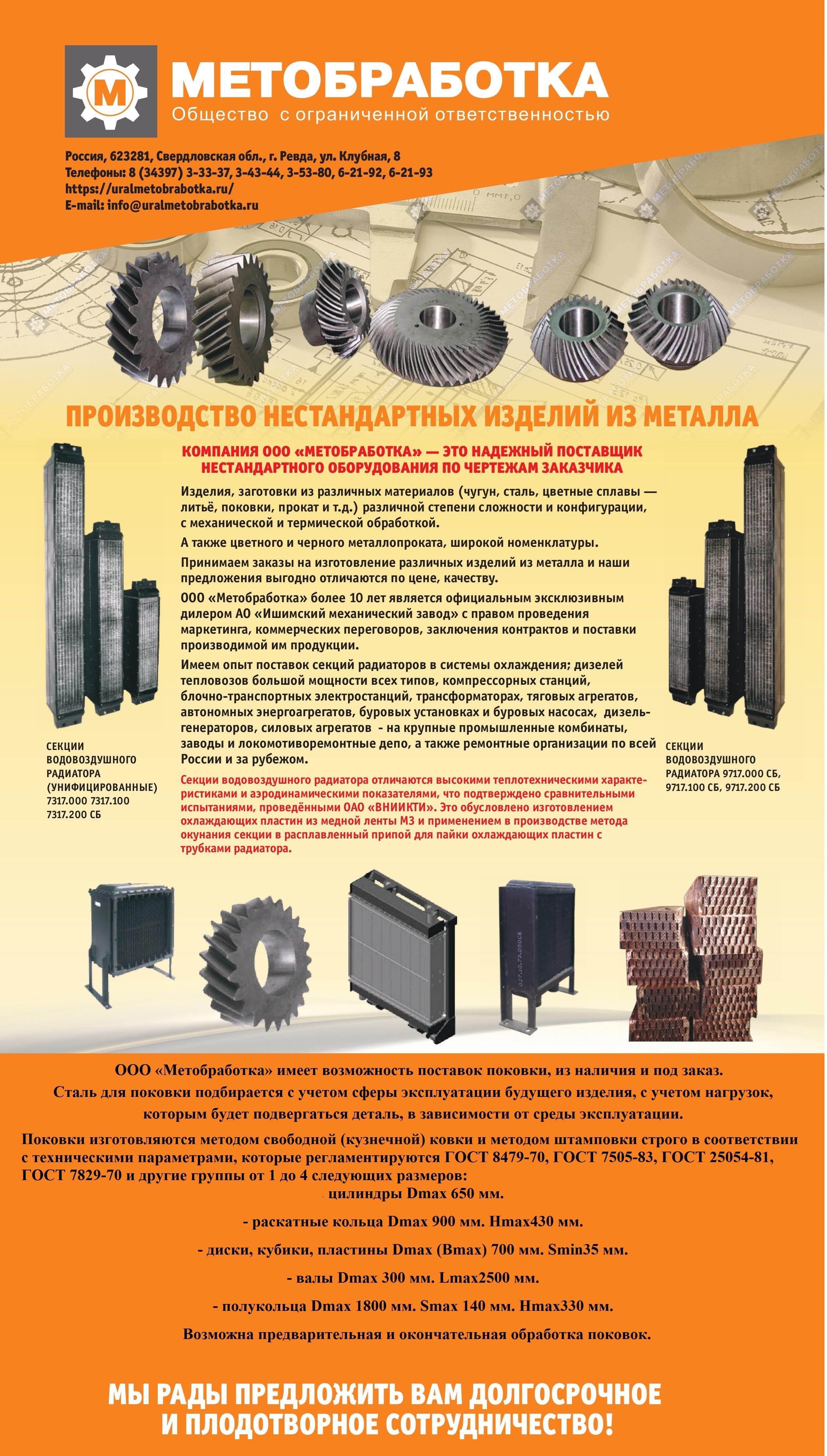 ООО «Метобработка» реализует заводские железнодорожных запчастей. Данная номенклатура включает в себя более 165 наименований запасных частей, в т.ч.: