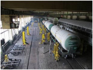 · Вагоносборочный участок включает в себя 10 ремонтных позиций, 5 из которых оборудованы домкратными установками грузоподъемностью до 120 тонн;