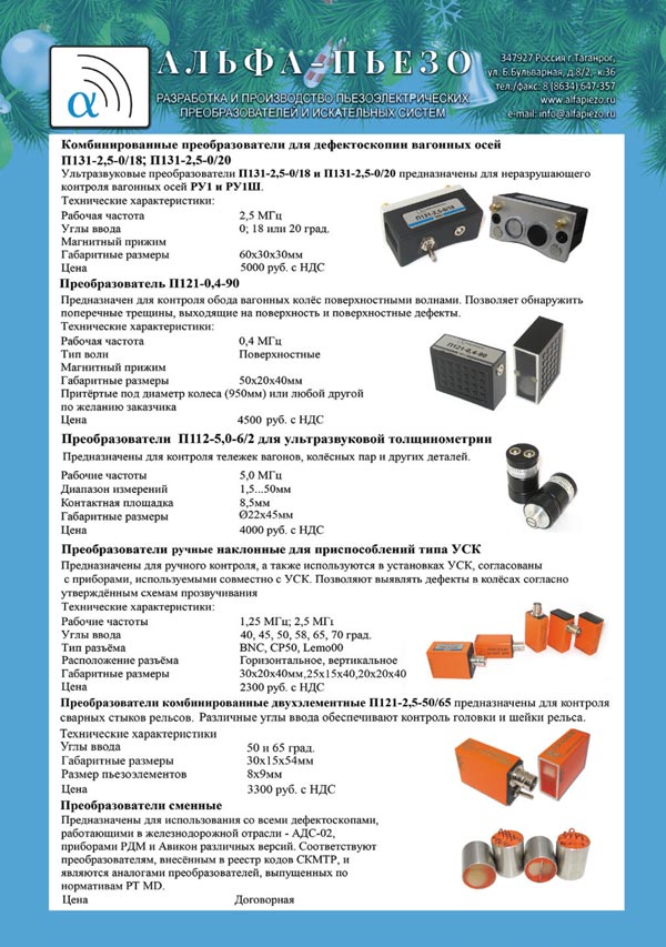 Разработка и производство пьезоэлектрических преобразователей и искательных систем для железной дороги от ООО АЛЬФА-ПЬЕЗО