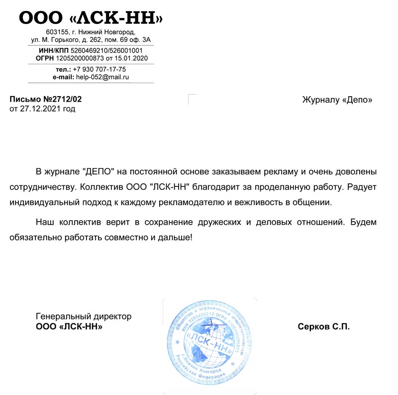 В журнале "ДЕПО" мы нашли для себя много возможностей для продвижения нашей компании ООО "ЛСК-НН".